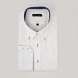This isn’t just any shirt. It's a shirt designed to make you look and feel your best. With its button down collar and premium white royal oxford fabric, it’s perfect for those days when you need to look sharp but still want to stay comfortable. The subtle blue and red thread accents add an entertaining twist to the classic white dress shirt, making it a stylish option for any occasion.